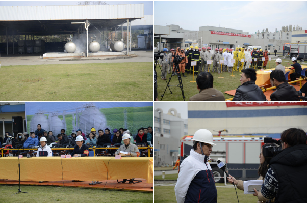 本次演練假定公司危險(xiǎn)化學(xué)品儲(chǔ)罐區(qū)四氫呋喃儲(chǔ)罐焊縫處發(fā)生泄漏,導(dǎo)致巡查人眼中毒受傷,隨著有毒氣體持續(xù)泄漏和擴(kuò)散,對(duì)廠區(qū)和周邊環(huán)境造成了嚴(yán)重影響。后因搶修中摩擦起火,對(duì)罐區(qū)存在著安全隱患和爆炸危險(xiǎn),情況十分危急。針對(duì)這一突發(fā)性時(shí)間,環(huán)保、消防、衛(wèi)生應(yīng)急慧聚藥業(yè)等應(yīng)急人員協(xié)同作戰(zhàn),開(kāi)展了泄漏突發(fā)事件的應(yīng)急處置與救援。
