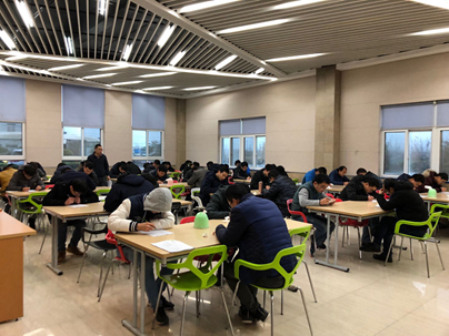 4:00考試正式開始,食堂內(nèi)里一片寂靜,只聽見“刷刷”的書寫聲,同事們個(gè)個(gè)信心十足,沉著冷靜,積極思考,埋頭答題。