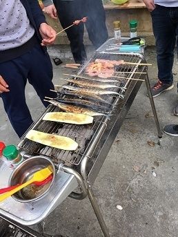 周末時(shí)間到了,大家提前購買了燒烤的食物、調(diào)料、飲料等??吹竭@么些好吃的東西,大家都迫不及待地開始洗菜、穿肉串、玉米……,有搬爐子的,有擺桌子的。爐子上擺滿了要烤的肉、海鮮,滋滋冒著香味,負(fù)責(zé)燒烤的同事簡(jiǎn)直成了大廚,從爐子這頭到那頭,一邊忙著給肉翻面,防止烤糊,還要撒調(diào)料、刷醬。