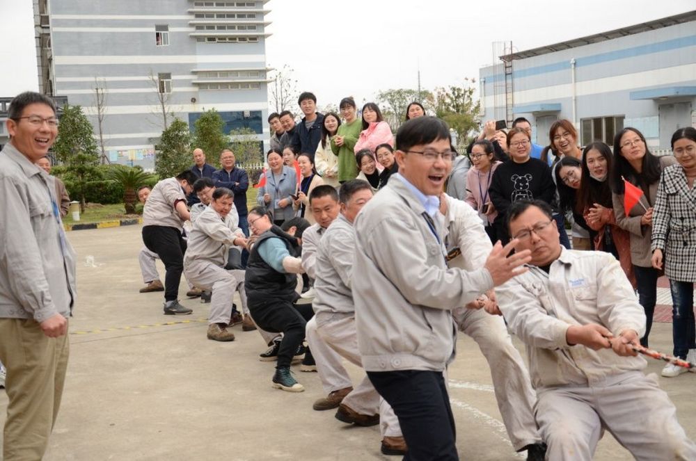一、拔河比賽:楚河漢界、群雄爭霸,誰更勝一籌?拔河比賽還沒有開始,各隊(duì)成員就躍躍欲試。有的脫外衣、有的換跑鞋、有的踢腿、有的彎腰,都在做熱身準(zhǔn)備。拔河比賽實(shí)行6對隨機(jī)抽取兩隊(duì)比賽,贏的隊(duì)伍再次兩兩比賽,直至決出冠軍、亞軍。拔河比賽共有6個(gè)隊(duì)參賽,分別是生產(chǎn)一部、生產(chǎn)二部、工程部、分析部、研發(fā)系統(tǒng)、行政系統(tǒng)。拔河比賽最為激烈、精彩、熱鬧,加油聲、笑聲不絕于耳。尤其是生產(chǎn)二部,挑選了精兵強(qiáng)將、憋足了勁,比賽時(shí)每一個(gè)人似而后仰,用腳后跟抵地,似而前傾,用腳掌抵地,觀戰(zhàn)的人都為他(她)把心提到了嗓子口,鼓掌的人把手都拍紅了,終于在大家的共同努力下得到了冠軍。